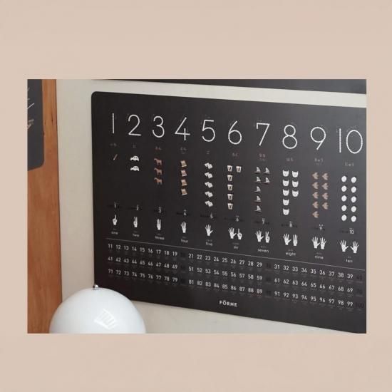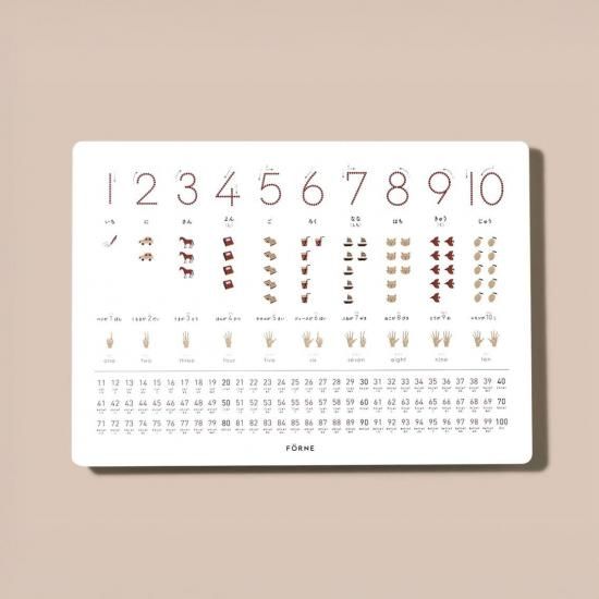 1〜10までの数字と数の数えかた・書きかた・読みかた・英語表記が学べる「数字ポスター」。