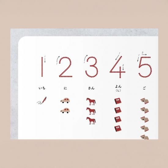 11〜100までの大きな数はひらがなの読みとともにわかりやすく配置しました。数の数えかたや書きかたに興味を持ちはじめたお子様にぴったりです。